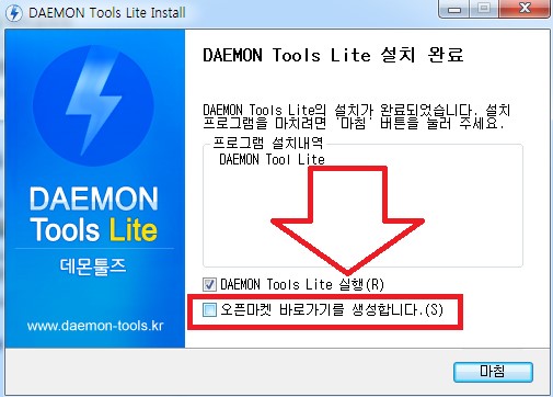 마침을 클릭하면 데몬툴즈 구버전이 로그인없이! 바로 실행됩니다